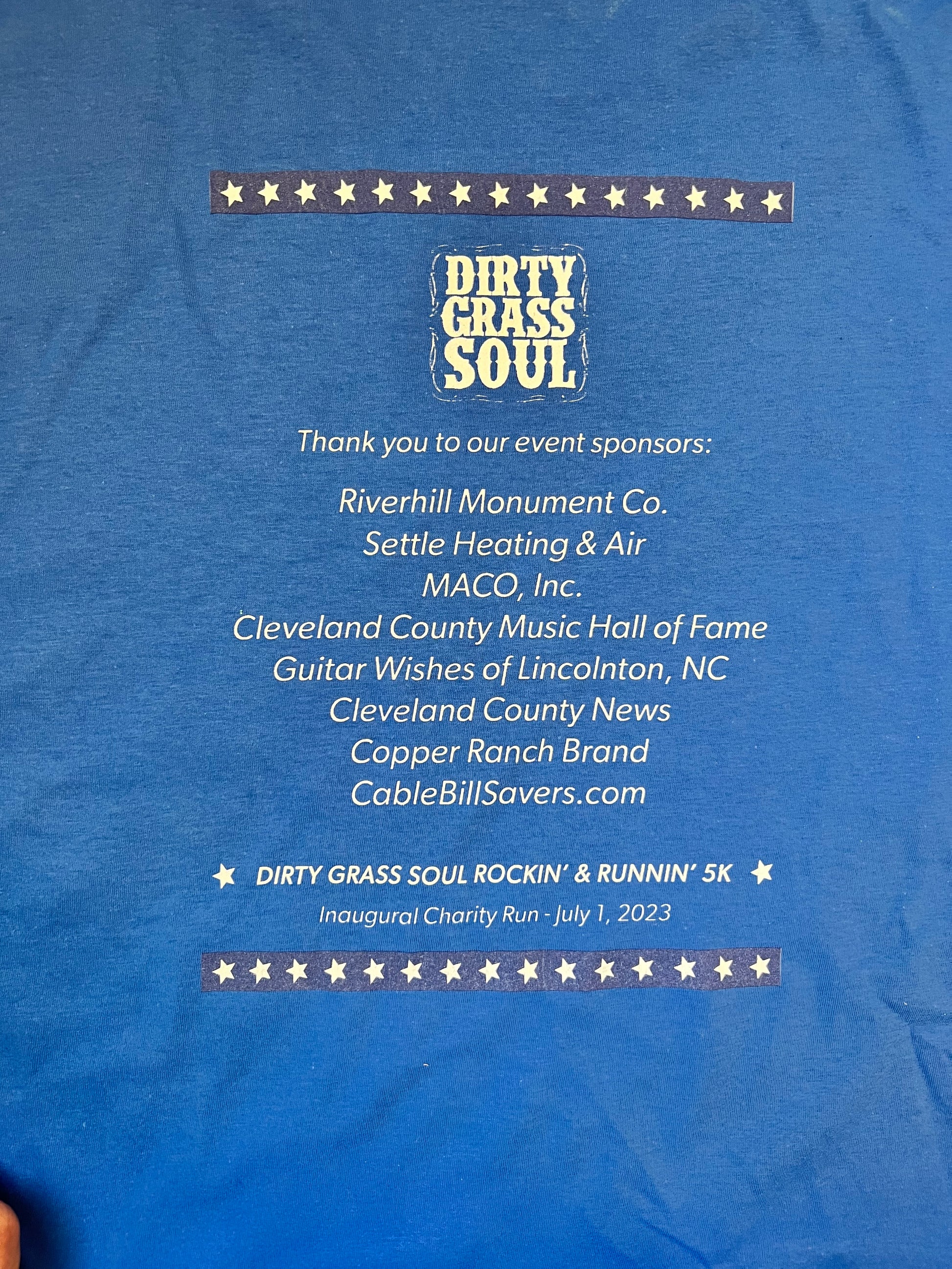 These are the emaining Shirts from the Inaugural Dirty Grass Soul Rockin’ & Runnin’ 5K last weekend.