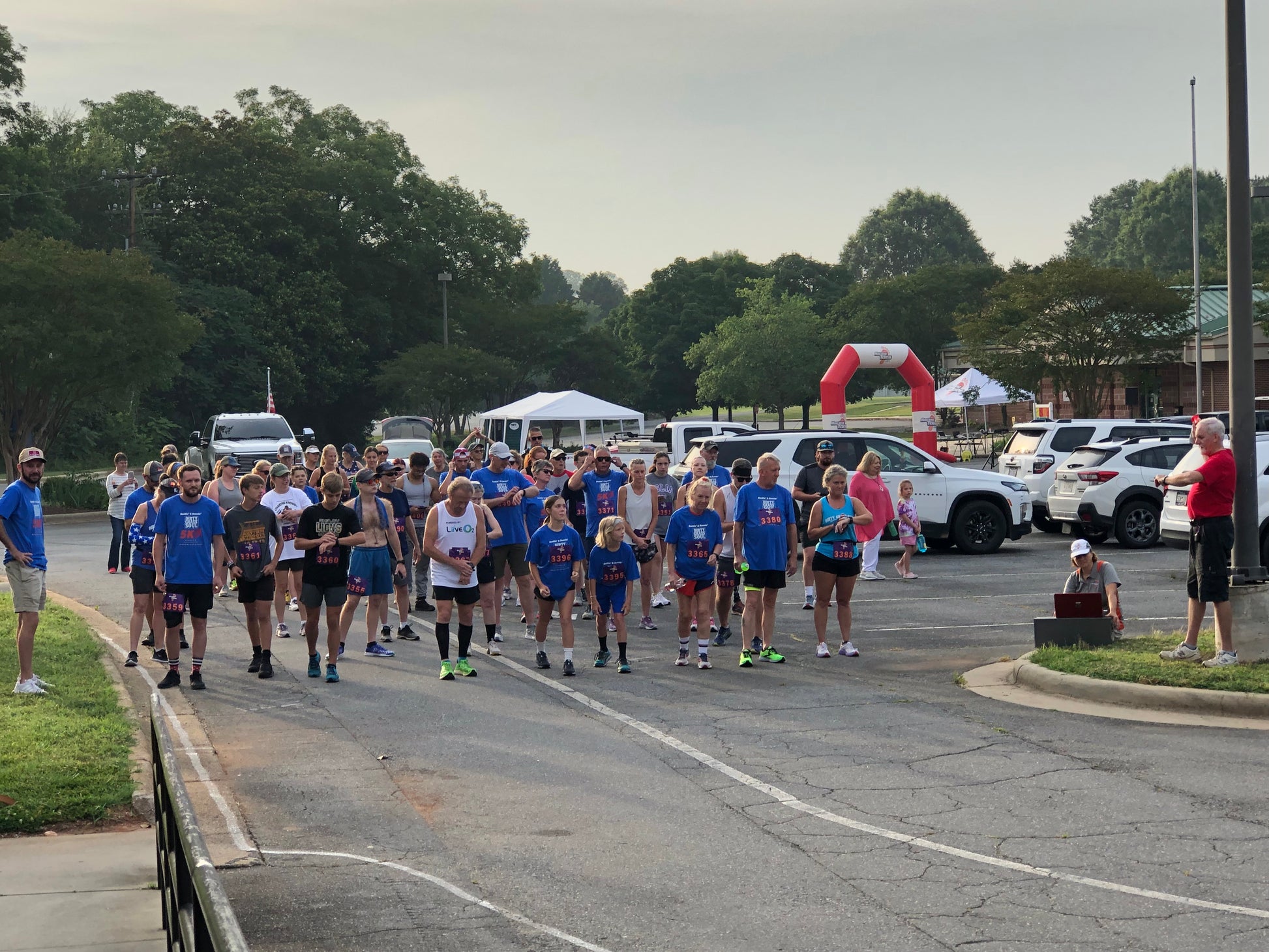 Shirt is a royal blue/GILDAN soft style/ two-sided t-shirt featuring the 5k logo on the front and event sponsors on the back.